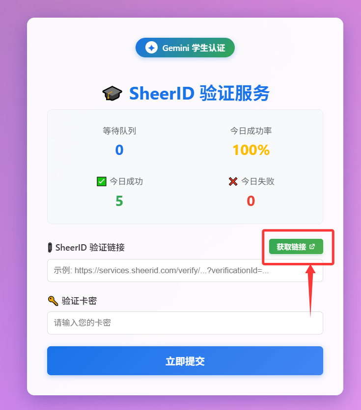 1️⃣ 点击「获取链接」获取 SheerID 验证链接